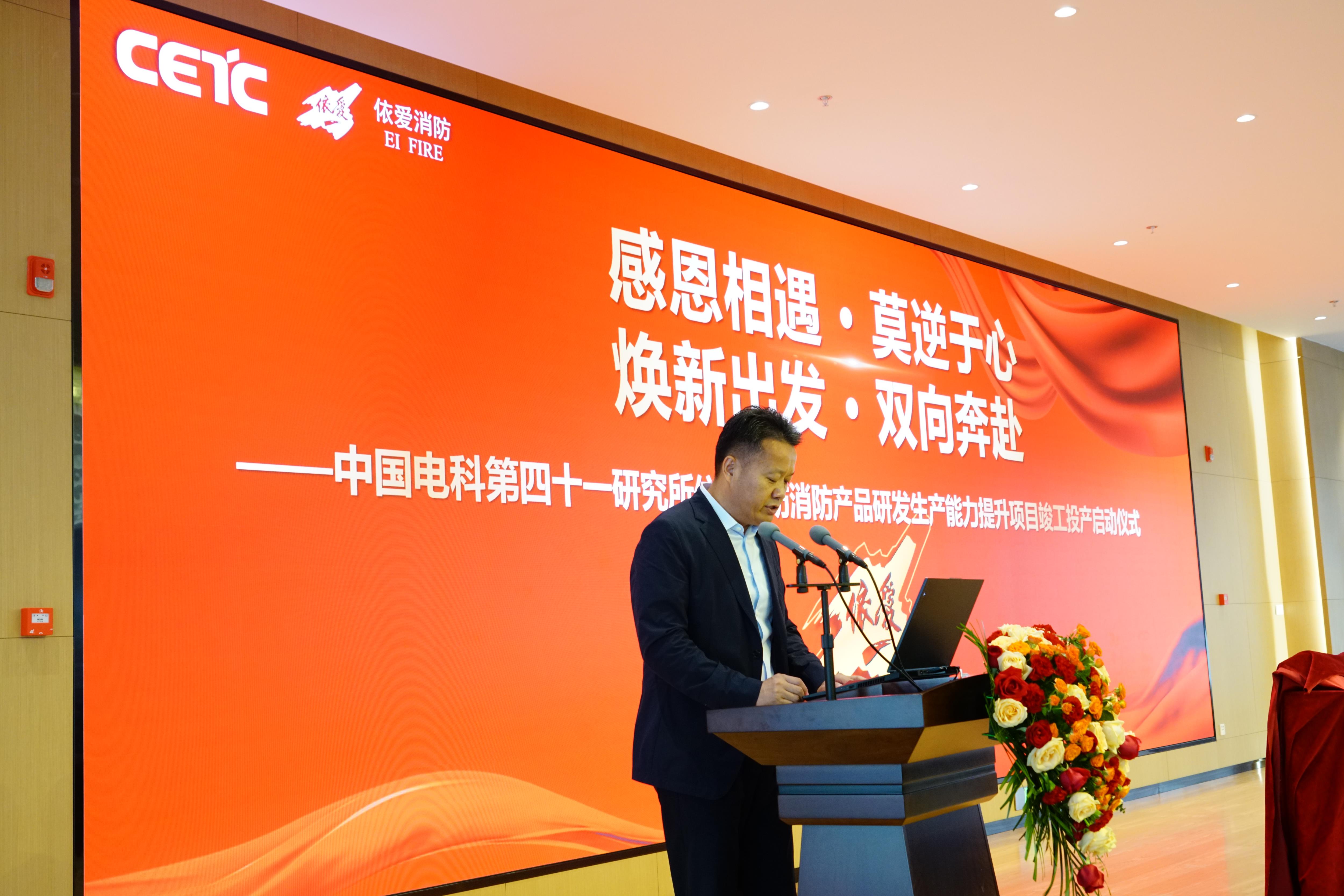 2023年10月7日10點58分,依愛消防消防產(chǎn)品研發(fā)生產(chǎn)能力提升項目竣工投產(chǎn)儀式在依愛電子產(chǎn)業(yè)園A1管理中心六樓多功能報告廳隆重舉行。蚌埠市副市長潘君齊出席竣工投產(chǎn)儀式,中國電子科技集團第四十/四十一研究所所長許建華作項目介紹,安徽建工集團股份有限公司副總經(jīng)理、安徽水利開發(fā)有限公司黨委書記、董事長張鍵、安徽省消防協(xié)會副會長兼秘書長黃俊分別致賀詞。蚌埠市高新區(qū)黨工委書記、管委會主任陳常林、中國電子科技集團公司第四十/四十一研究所副所長宋弘、中電科思儀科技股份有限公司黨委委員、副總經(jīng)理石險峰、市直機關(guān)和高新區(qū)領(lǐng)導及消防公司領(lǐng)導,與依愛消防全國各地客戶代表、供應商代表、依愛消防公司員工代表等300余人齊聚一堂,參加此次竣工投產(chǎn)儀式,儀式由中國電子科技集團公司第四十/四十一研究所副所長、蚌埠依愛消防電子有限責任公司董事長史紅旗主持。