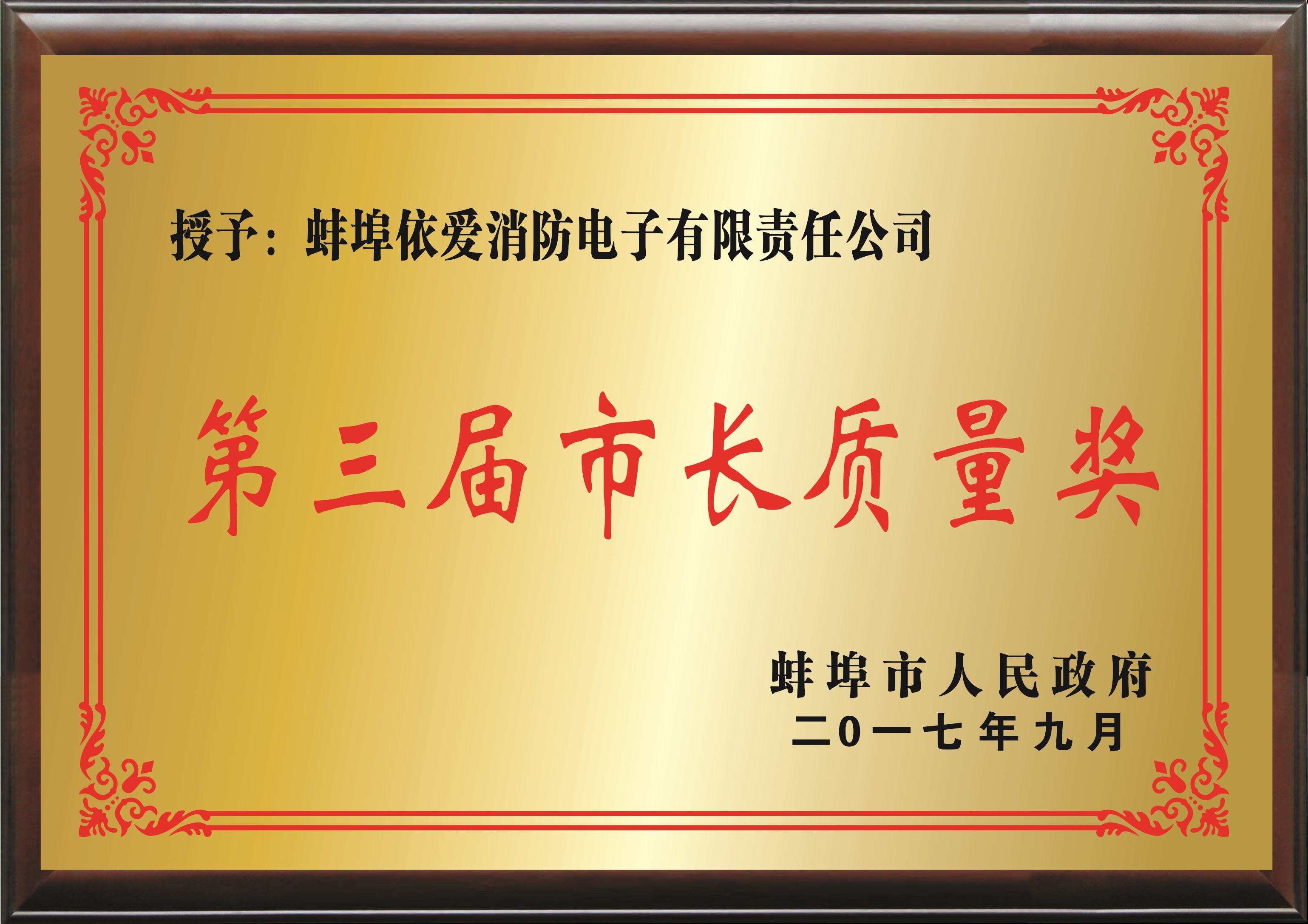 依愛消防榮獲蚌埠市長(zhǎng)質(zhì)量獎(jiǎng)